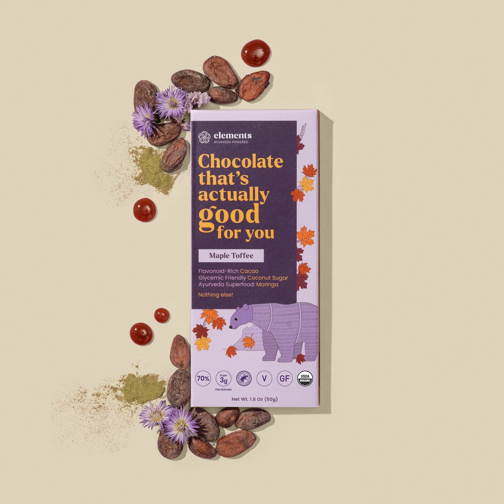 I been making bean to bar Cacao for years. I’ m impressed. I found a good high percent cacao with unique natural spices and herbs. I eat for my health. And, the high quality cacao is what I find in Elements along with the healing herbs and spices.