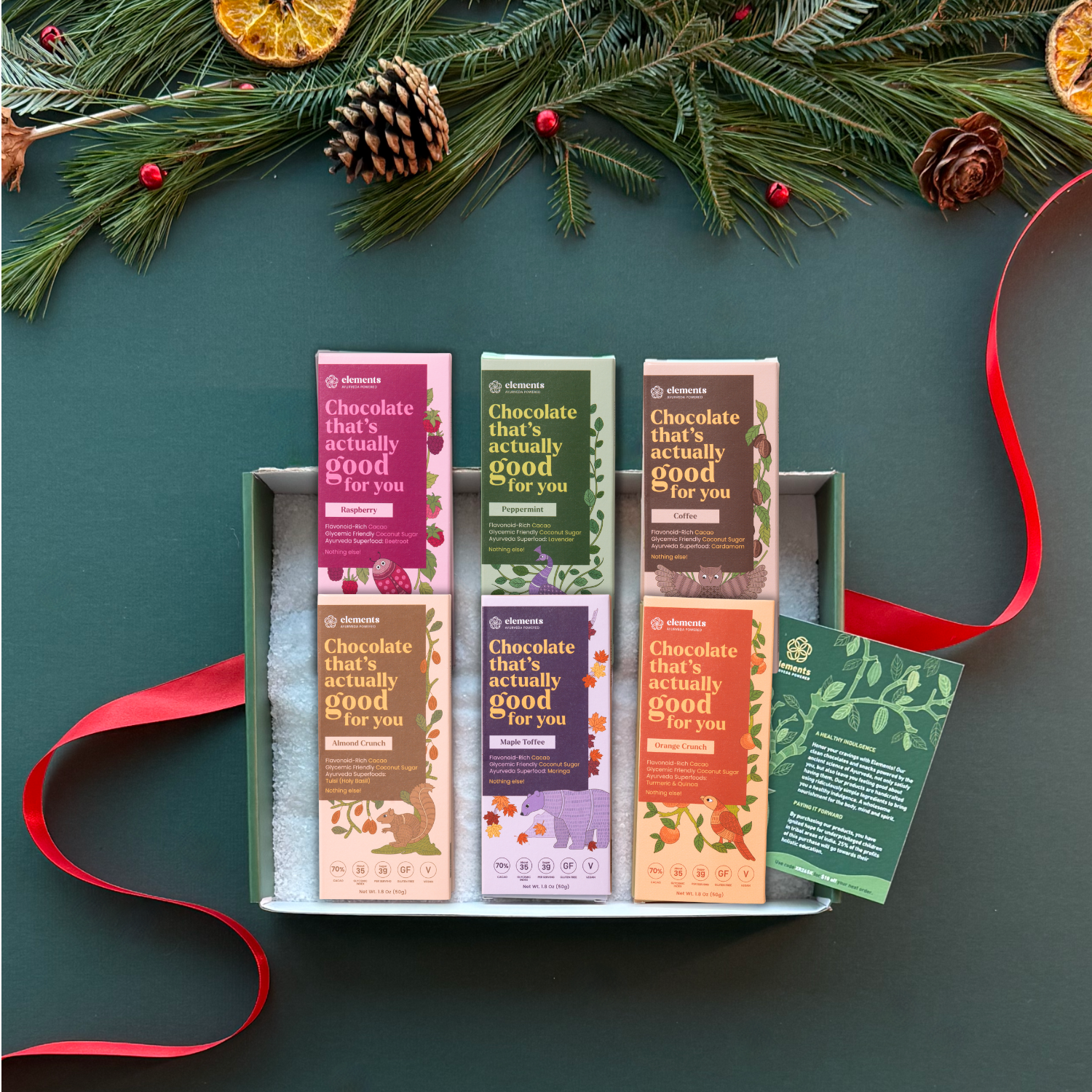 Indulge in the warmth of the season with our Founder's Favorites Gift Box, a curated selection of Elements Truffles chocolates personally chosen by...