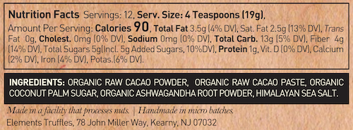 Organic Coconut Palm Sugar, Organic Raw Cacao Powder, Organic Cacao Paste, Organic Ashwagandha Root Powder, Himalayan Sea Salt