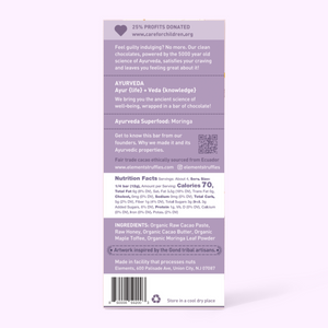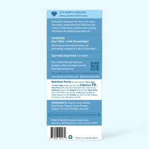 Each bar is hand-crafted, with a beautiful lotus motif. All chocolates are made with fair-trade Ecuadorian cacao. Sweetened with just coconut sugar and infused with ancient Ayurveda superfoods.