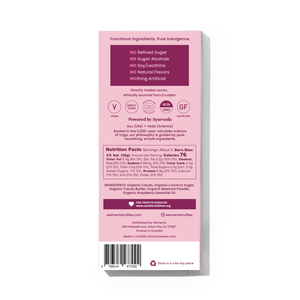 Of course, like everything else from Elements, Raspberry bar is free from dairy, refined sugar, soy, lecithin, sugar alcohols, natural flavors, gluten or absolutely anything artificial. Think of it as a treat made from two core ingredients: Organic Cacao and Organic Coconut Sugar - the only sweetener! Beetroot and Pure Essential Oils lend functional benefits and a unique sweetness that lingers on!